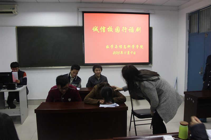 为宣传国家资助政策及相关知识,培养广大学生的诚信观念,促进大学生健康成长。11月9日晚,数学与信息科学学院在东一楼216室举办了“诚信校园行”短剧大赛。