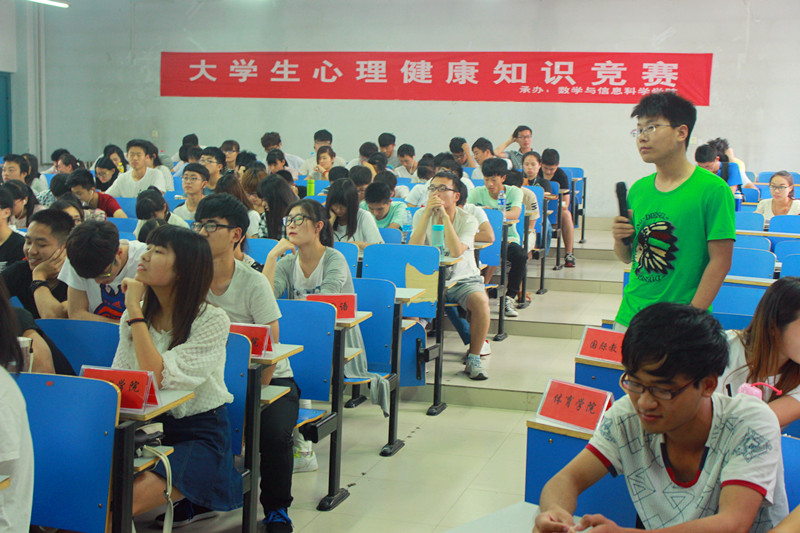 为普及大学生心理健康知识,提高大学生综合素质,培养敏锐思辨能力,营造大学心理健康知识研讨氛围,5月12日下午14:30,数学与信息科学学院邀请东风校区各兄弟院系于东一楼218举办了心理健康知识竞赛活动。