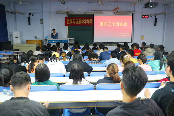 为深入学习宣传贯彻习近平新时代中国特色社会主义思想和党的十九大精神,发挥社会实践作为加强和改进大学生思想政治教育重要途径的优势,增强同学们对暑期社会实践的认识,促使同学们及时吸收和总结暑期社会实践的经验,10月16日晚,数学与信息科学学院在东一楼218教室开展“暑期归来话实践”主题团日活动。2020级全体学生参加了此次活动。