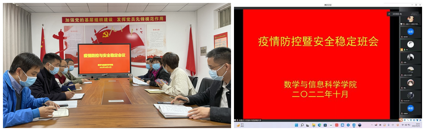 10月,面对突如其来的疫情带来的不利影响,针对师生教学、生活保障等现实难题,数学与信息科学学院党委高度重视,科学研判,紧密部署,全院教师闻令而动、向疫而行,忠诚践行初心使命,聚力打赢疫情防控阻击战。