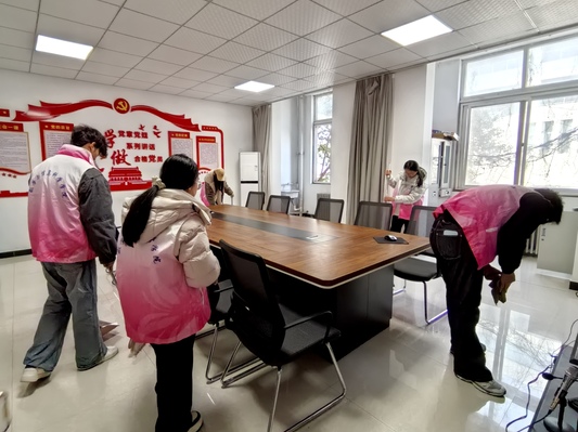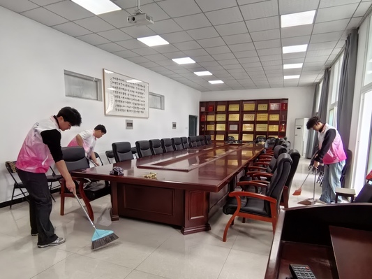 理论学习结束后,学院志愿者前往东一楼教室及教师办公室开展环境卫生清洁志愿服务。志愿者们分工明确、协作有序,对教室讲台、门窗玻璃、地面等区域进行细致清扫,并规范整理办公与教学物品。
