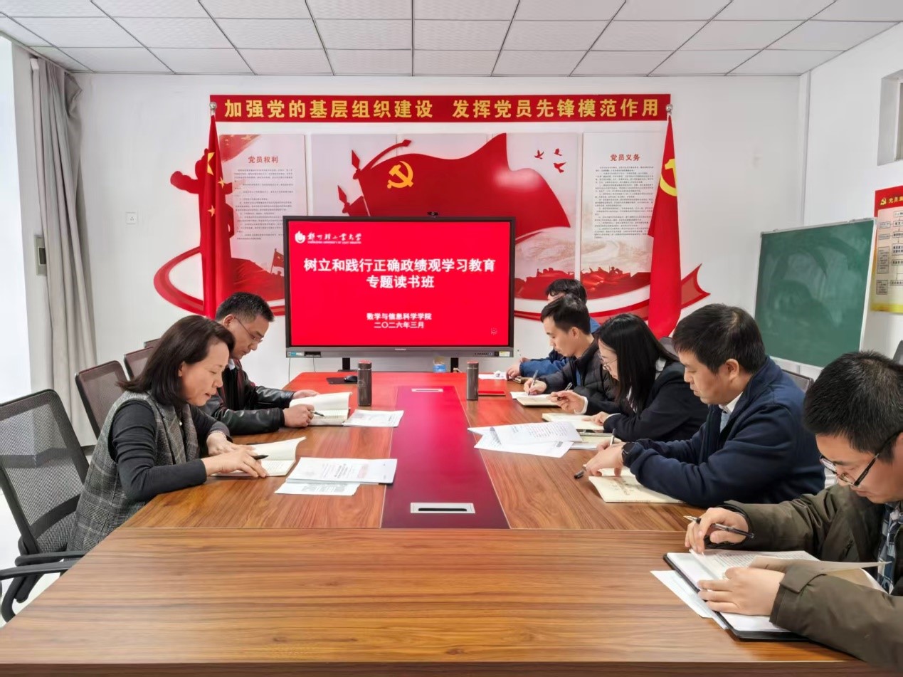 3月25日至26日,数学与信息科学学院党委举办树立和践行正确政绩观学习教育专题读书班。本次读书班采取书记领学、集中自学和交流研讨相结合的方式,学院领导班子成员、党委委员参加学习。