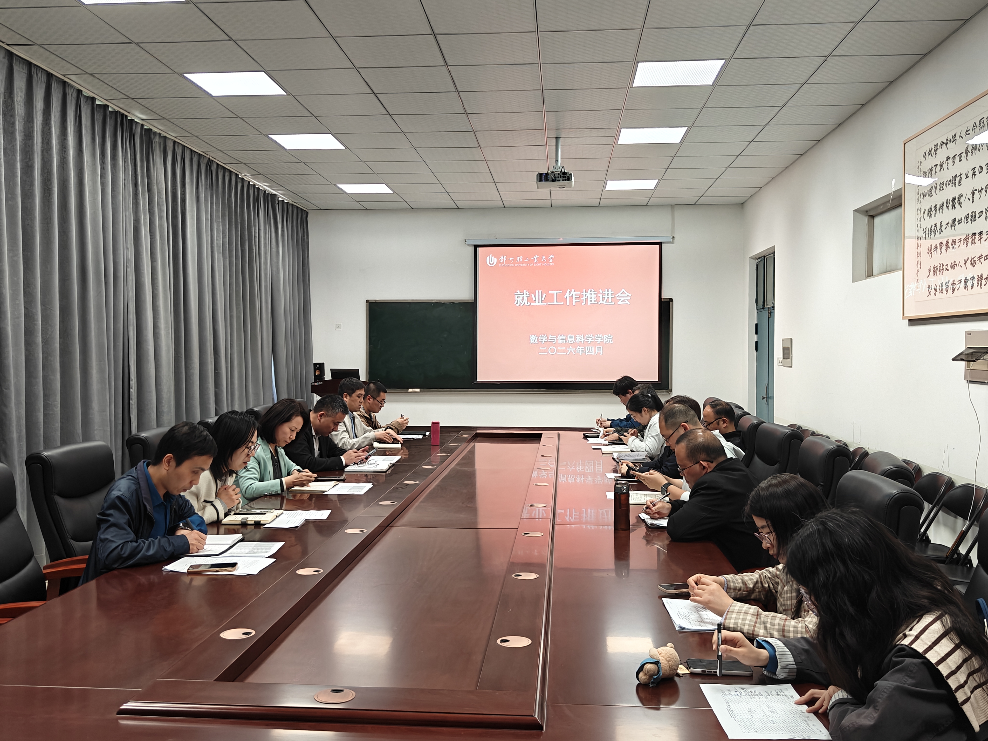 为深入贯彻落实学校毕业生就业创业工作部署,扎实推进2026届毕业生就业攻坚行动,4月23日下午,数学与信息科学学院在东一楼310会议室召开4月份毕业生就业工作推进会。学院领导班子、各系部主任、毕业班班主任、就业专职辅导员及毕业班辅导员参会,会议由学院党委副书记郑琦主持。