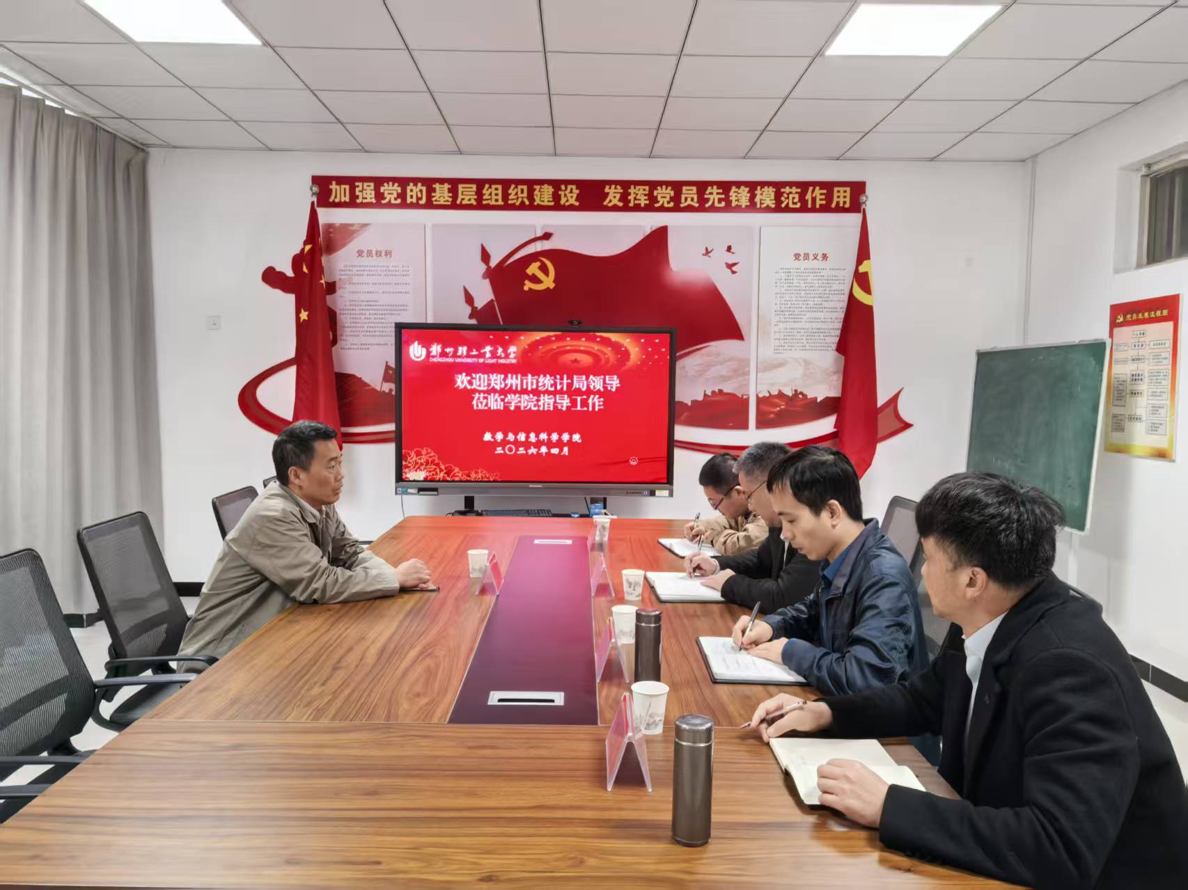 4月23日上午,郑州市统计局党组成员、一级调研员李向涛莅临数学与信息科学学院,开展校局合作交流。数学与信息科学学院院长黄士国、副院长许振华、王艳青等出席座谈会。