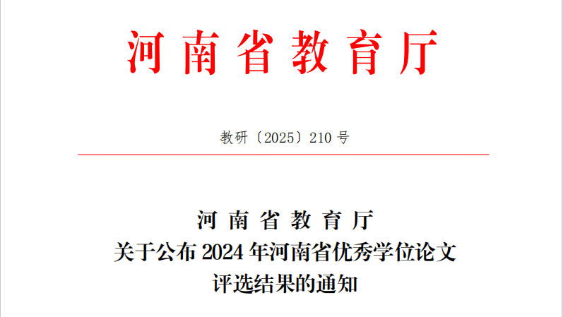 多年来,我院不断加强本科生和研究生的毕业论文的管理工作,逐步建立健全了一系列质量保障办法,形成了全过程质量监控体系,历届毕业论文均顺利通过学校、省教育厅以及本科教学质量审核评估专家的抽审。本次获奖,是我院第一次同时拿到两个河南省优秀学位论文,也是我院首次获得河南省优秀硕士学位论文,这些都标志着我院学生培养水平的进一步提高。今后,我院将进一步完善相关制度和工作机制,推进学生培养质量的全面提升。