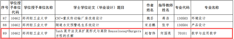 近日,河南省教育厅公布了《河南省教育厅关于公布2024年河南省优秀学位论文评选结果的通知》,我院刘静静教授指导的2024届硕士毕业生程佩的毕业论文《基于预训练模型的神经机器翻译关键技术研究》获省优秀硕士学位论文,何国亮教授指导的2024届本科毕业生赵智伟的毕业论文《Tanh 展开法及其扩展形式与高阶 Boussinesq-Burgers方程的求解》获省优秀学士学位论文。