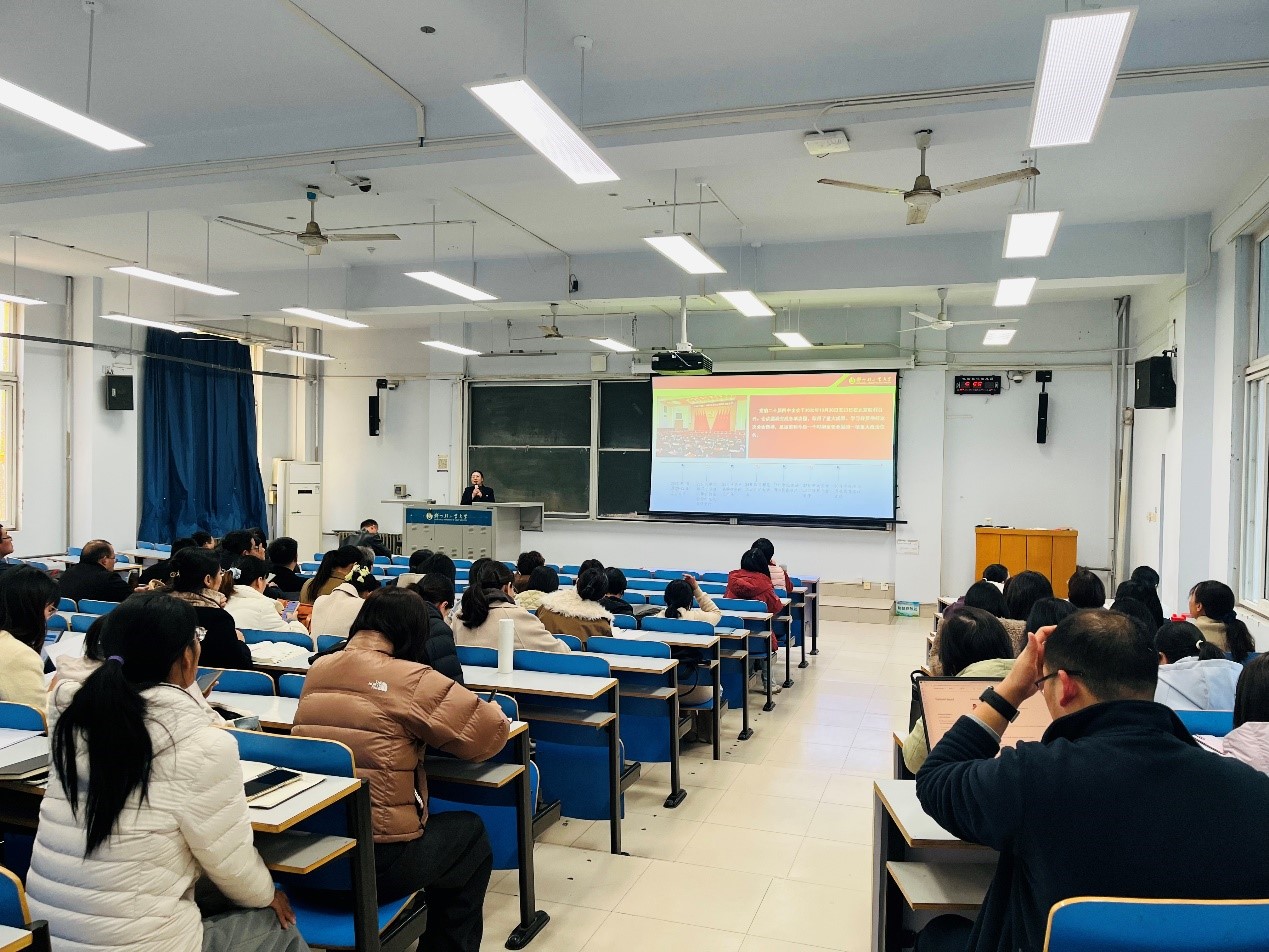 宋老师以《中国式现代化的“十五五”行动纲领》为主题,围绕“全会的整体情况及重大意义”、“《建议》的总体思路和重大战略部署”和“贯彻落实全会精神的实践要求”三大核心板块,通过详实的数据、生动的案例和深刻的理论阐释,系统梳理了全会的历史方位、时代背景与重大意义。她深入剖析了“十五五”时期在全面建设社会主义现代化国家新征程中的关键作用,从指导思想、目标体系、战略任务到具体举措,全方位解读了“十五五”时期经济社会发展的科学规划与战略布局,并着重强调了坚持和加强党的全面领导这一根本保证。同时,宋老师紧密结合我校轻工业办学特色,就高等教育内涵式发展、青年人才自主培养、科技创新自立自强等国家重大战略需求,提出了践行全会精神的具体路径与行动指南。